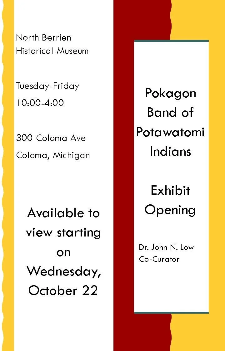 Come check out the new Pokagon Band of Potawatomi Indians Exhibit, available to view on Wednesday, October 22 and after!